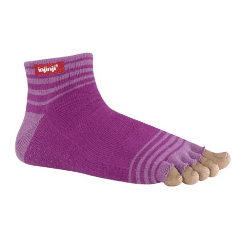 Keskmise paksusega Injinji jooga varvassokid/joogasokid See puuvillane hingav Injinji varvassokk kaitseb teid villide tekkimise eest varvaste vahele ja kannale. Soki alaosa lisab mugavat stabiilset toestust teie pöiavõlvile. Tänu eraldi õmmeldud kannaosale ja varvastele püsivad sokid ümber jala ning libisemiskindel tald tagab libisemiskindluse näiteks jooga ja pilatese tunnis.