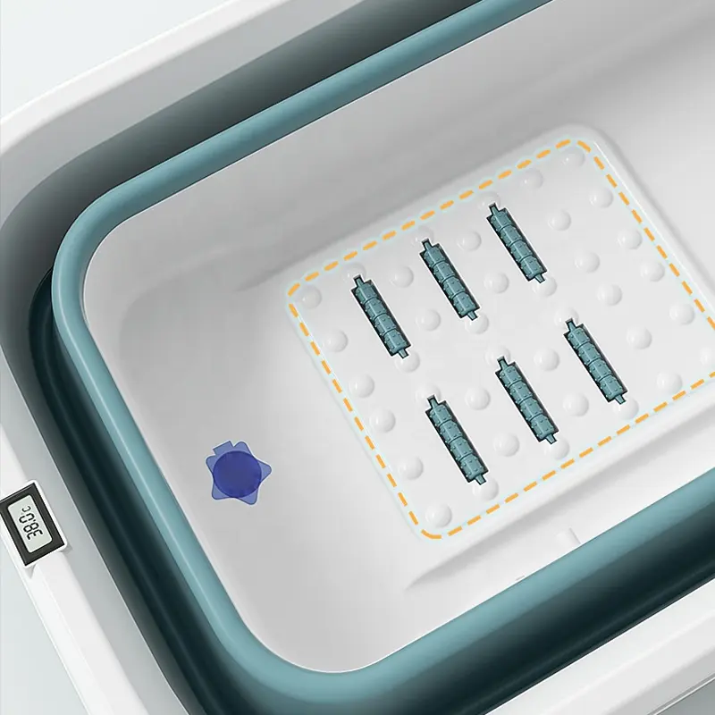 Lihtne hoiustamine - vanni saab kokku voltida, mis teeb selle mugavaks väikestes korterites või reisil olles Hoiab sooja 60 minutit Omab kontuuritud käepidemeid Varustatud eemaldatava kattega Multifunktsionaalne - seda saab kasutada kogu pere Kvaliteetne töötlus - valmistatud keskkonnasõbralikust materjalist, lõhnatu Turvaline - vanni põhjas on libisemisvastane matt, mis muudab selle ohutuks ja mugavaks Vanni põhjas on massaažirullikud 6tk, et pakkuda täielikkus lõõgastust! Valmistatud Plstikust- PP +TPE Kaal 10.6kg