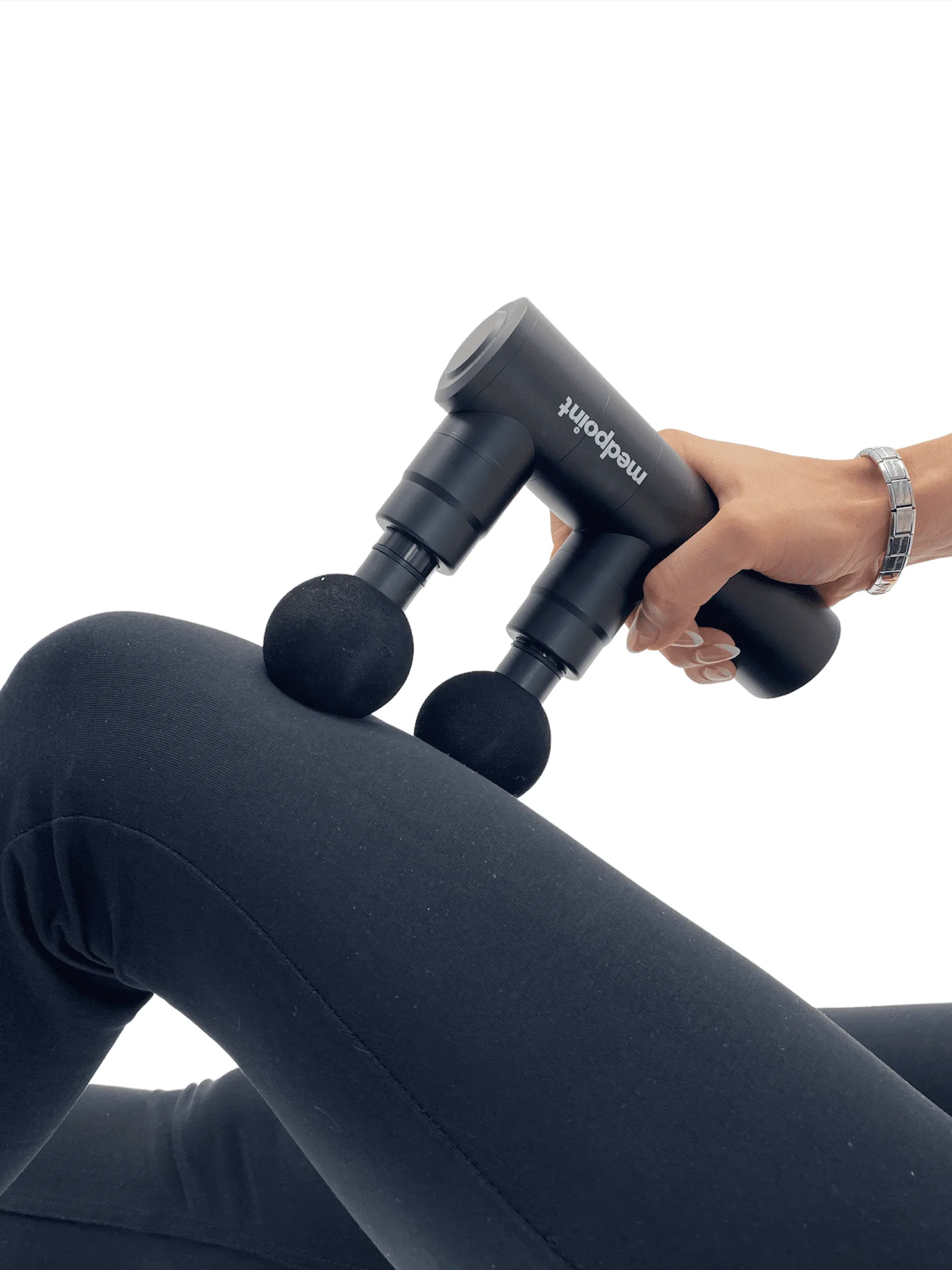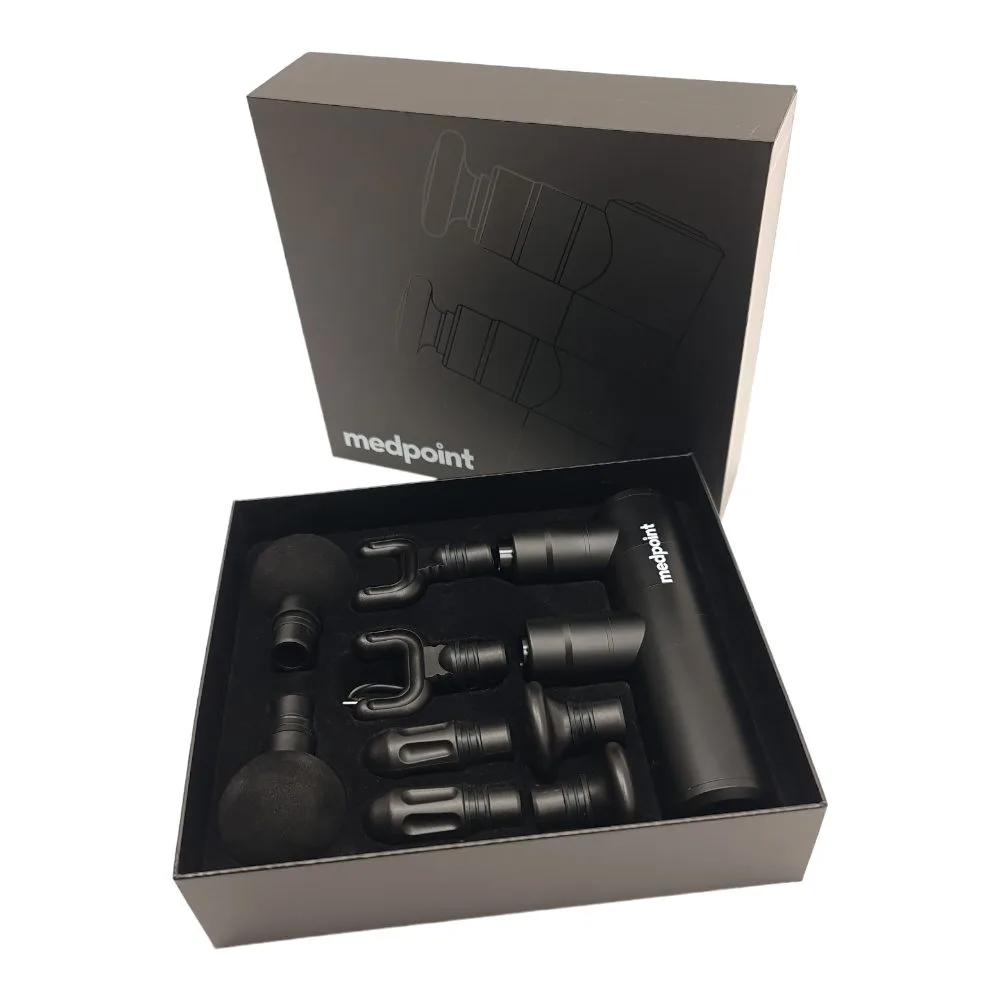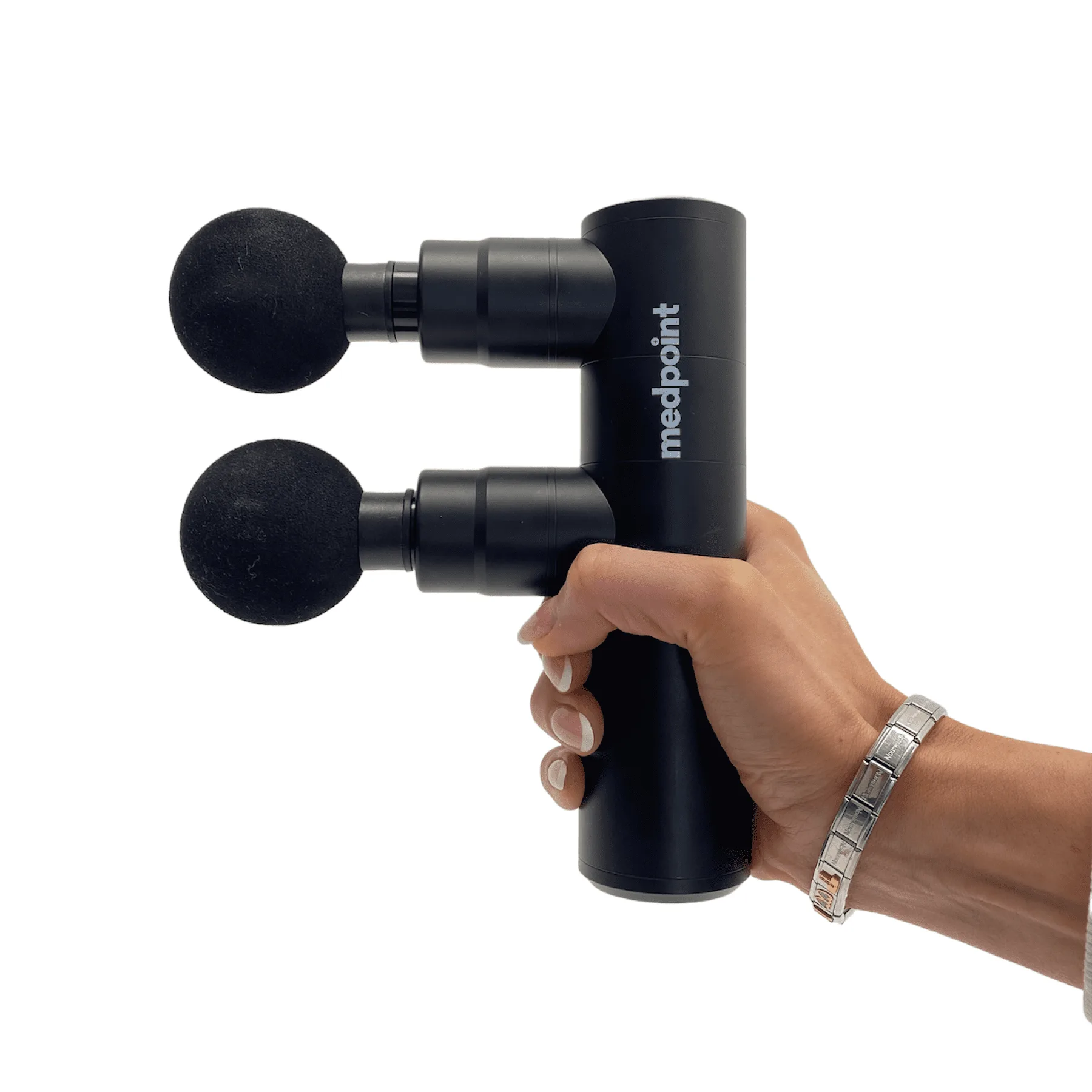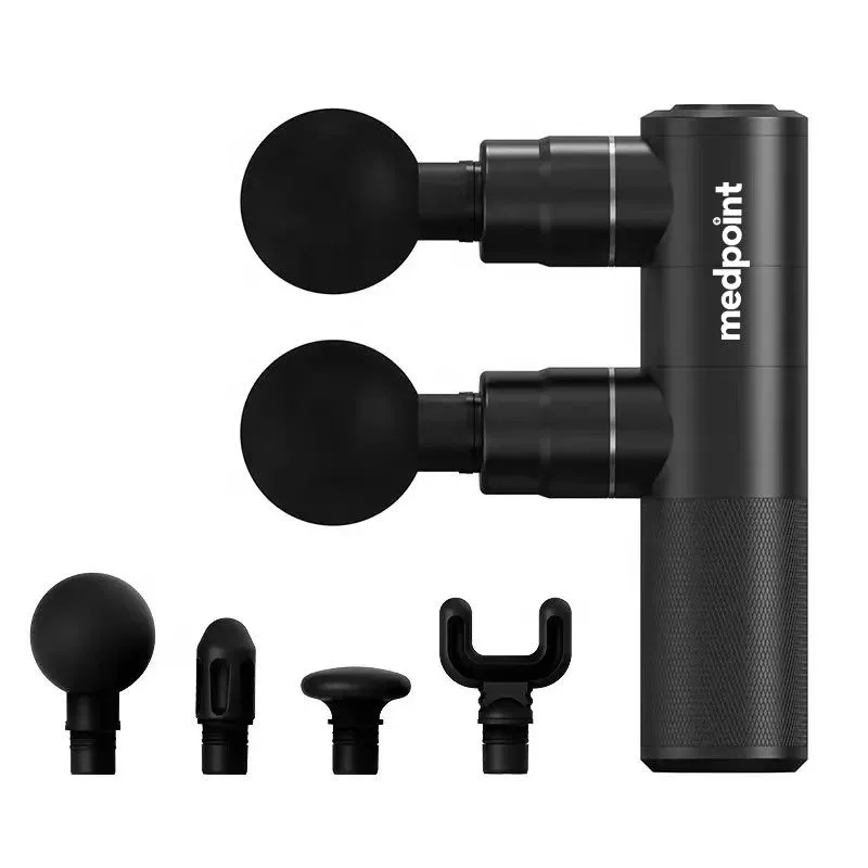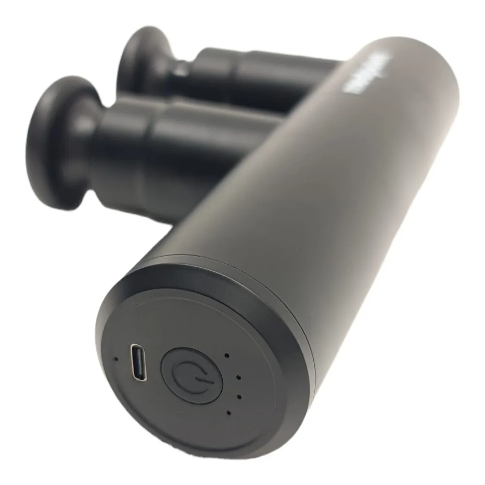 Medpoint kahe peaga massaažipüstol - Kaks pead on parem, kui üks! 2 korda kiirem tulemus. Medpoint Mini Twin Black Edition - jätab mulje, et masseeritakse kahe käega Kahe peaga vahelduvad löögid on nagu kahe käega rütmiline massaaž.