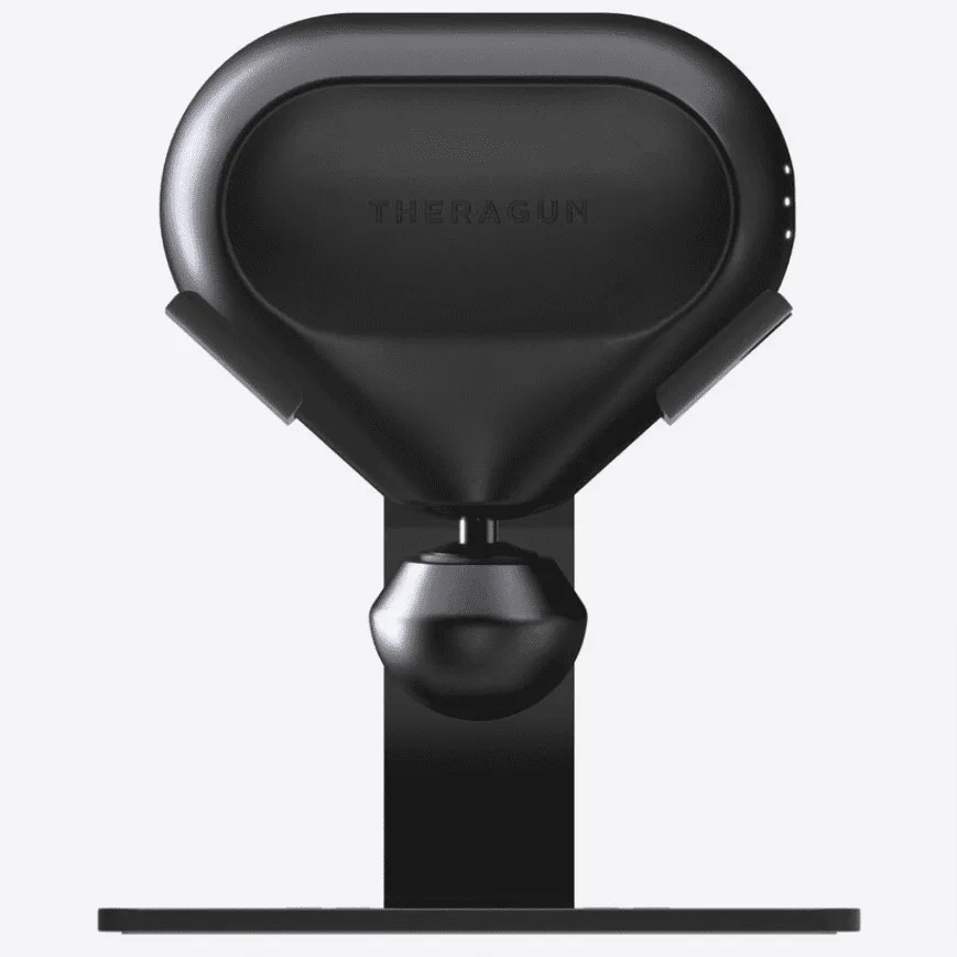 THERABODY THERAGUN MINI STAND See läikiv metallist alus näitab teie theragun minit, hoides selle hõlpsasti ligipääsetavana alati, kui vajate kiiret lõõgastust. Tugeva aluse ja mugava avamisega, mis tagab juurdepääsu laadimispordile, on minialus teie seadme hoidmiseks parim viis. Theragun mini ja laadija ei kuulu komplekti