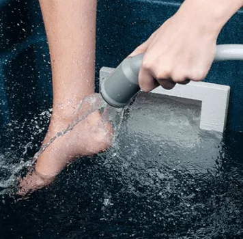 Suurepärane filtreerimine Manuaalne kinnitus vigastuste sihtpäraseks raviks Pidev tõhus jahutamine Optimaalne terapeutiline vee sügavus Kõrge soola kontsentratsioon, mis soodustab paranemist Teraapiat on võimalik muuta vastavalt vajadusele Jahutage vesi vastavalt soovile Kasutage käsidušši, et sihtida veejuga valu piirkonnale või kasutage seda pehmete kudede traumade raviks Optimaalse ravitoime saavutamiseks on ideaalne kasutada 3-6minutit Ideaalne treeningujärgseks taastumiseks Kolm ravimeetodit Kui soovid, et vesi oleks reie keskosani, siis seisa sisetrepil Kui soovid, et vesi oleks vöökohani siis seisa vanni sügavamas osas Kui soovid, et kogu keha oleks vee all, siis istuge sisetrepile