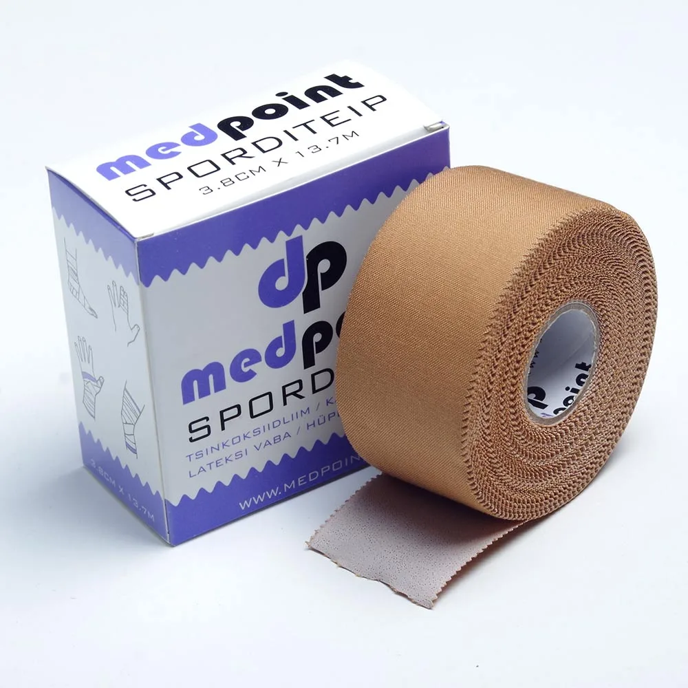 Värvus - pruun Laius-3,8 cm Pikkus - 13,7 m Materjal – Rayon, tsinkoksiid liim Omadused – Väga tugev, rebitav lihtsalt igas suunas, laseb nahal hingata, eriti tugev zinc oxide liim. Maailma parim sporditeip, mis püsib peal ka kõige äärmuslikumates oludes ja intensiivsemates tegevustes. Medpoint RayGold Tape on välja töötatud spordi-meditsiini ekspertide poolt.