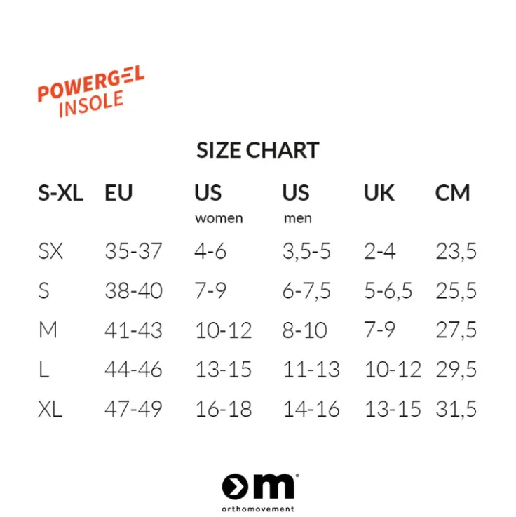 OM Powergel Insoles - geelist sisetallad on loodud pakkuma dünaamilist tuge ja löögisummutust nii igapäevaseks kasutamiseks kui ka sportimisel ja tööl. OM-tehnoloogiaga välja töötatud dünaamiline süsteem vähendab tõhusalt teie kehale avaldatavat liigset survet, toetades samal ajal teie jala loomulikku funktsiooni. Pealmine kate on naha suhtes eriti tundlik ja sile ning minimeerib hõõrdumise ja villide tekkimise ohtu Dünaamiline funktsioon: helesinisel materjalil on dünaamiline funktsionaalne tihedus, pakkudes nii palju tuge kui vaja, samal ajal kui see neelab lööke Anatoomiline kannaosa jaotab kanna survet, vähendades koormust Fokuseeritud löögitsoonid: oranžid osad annavad kanna, liigeste ja luude jaoks täiendavat löögisummutust, mis on kujundatud vastavalt jooksja survemustritele.