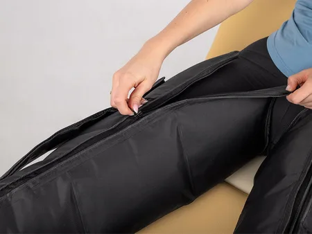 intuitiivne ja lihtne juhtimine spetsiaalne sisetükk külma- ja soojaravi jaoks 5 automaatprogrammi seadistatav tööaeg 10–50 min reguleeritav rõhk 50–250 mmHg vastupidav aku : 5000 mAh OLED-ekraan vastupidavad 8-kambrilised mansetid