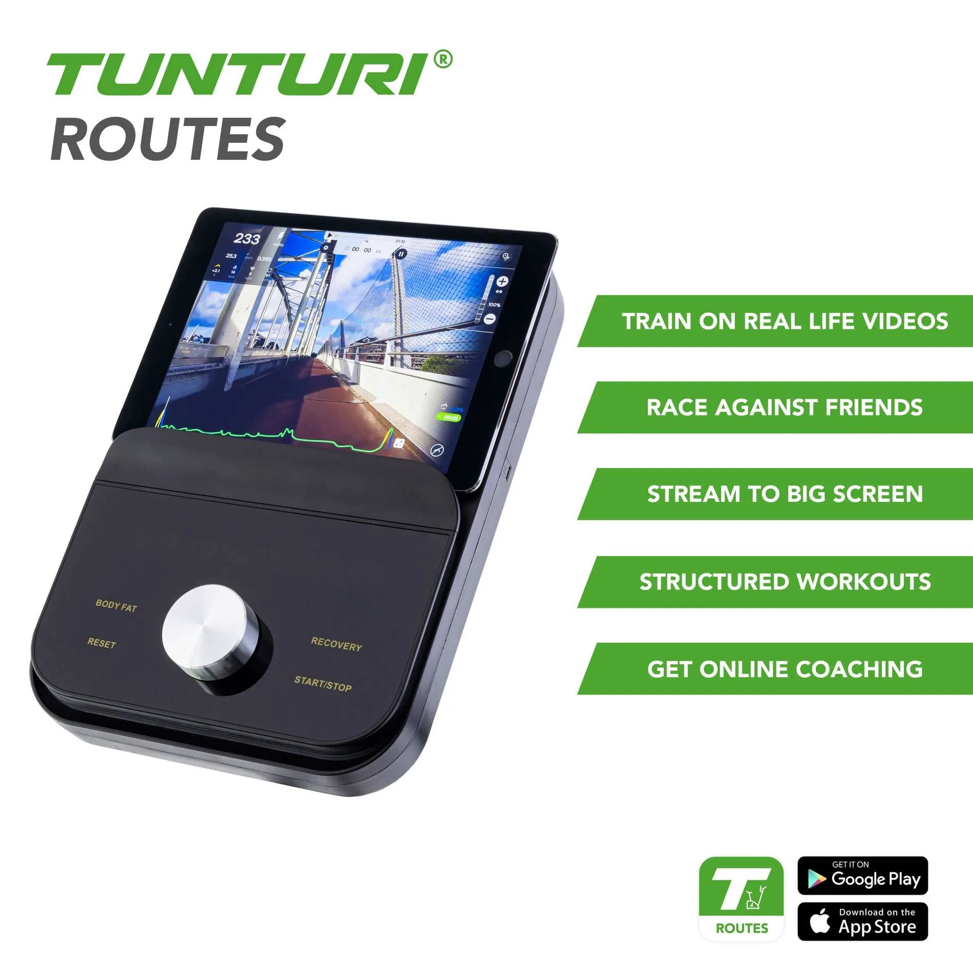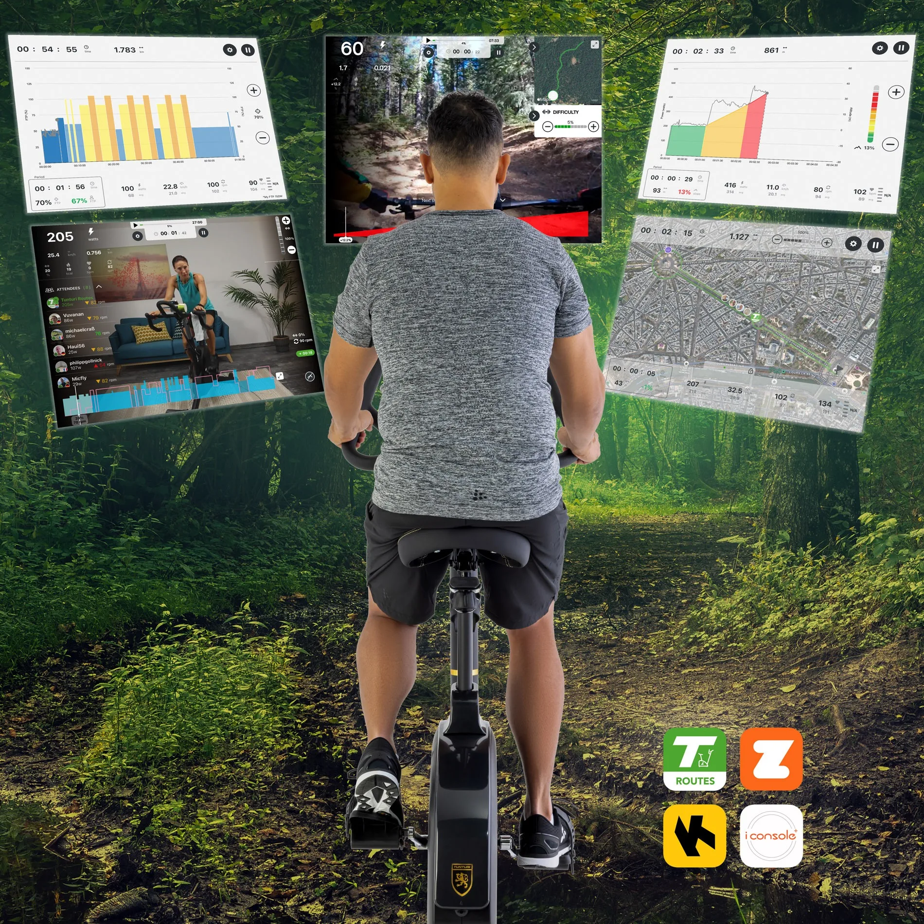 Tunturi Routes, Kinomap, Zwift (juhtimisega), iConsole+