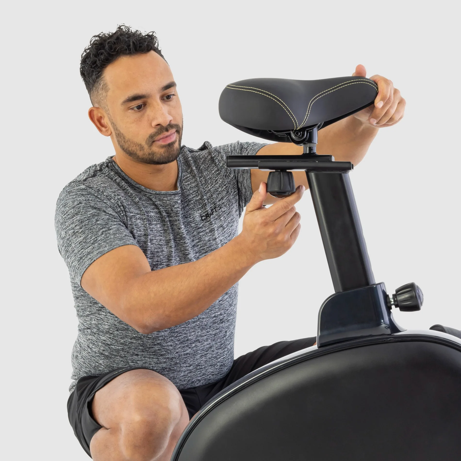 Ergonoomiline Comfort-sadul ennetab ebamugavust ja hõõrdumist nii lühikeste kui pikkade treeningute ajal. Suurem istmepind jaotab kehakaalu ühtlasemalt, summutades liikumisest tulenevat mõju. Sadul on reguleeritav nii kõrguses kui pikkuses, võimaldades kohandada ideaalset sõiduasendit või kiirelt muuta seadeid, kui treenerit kasutab mitu inimest.