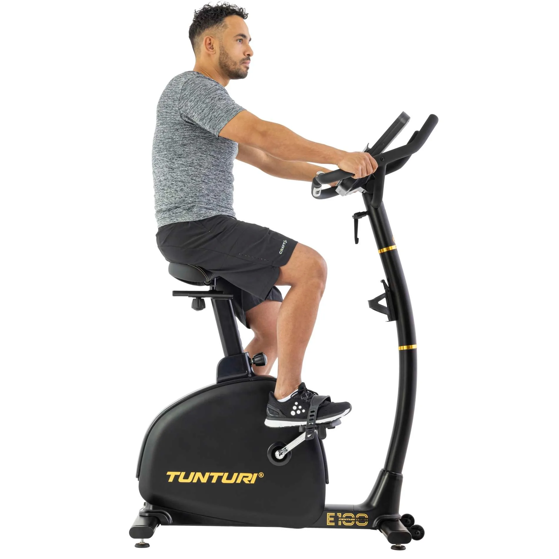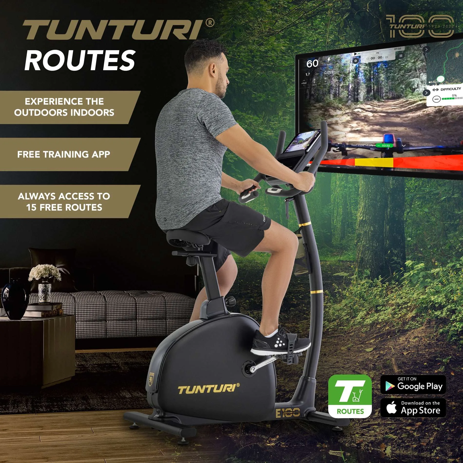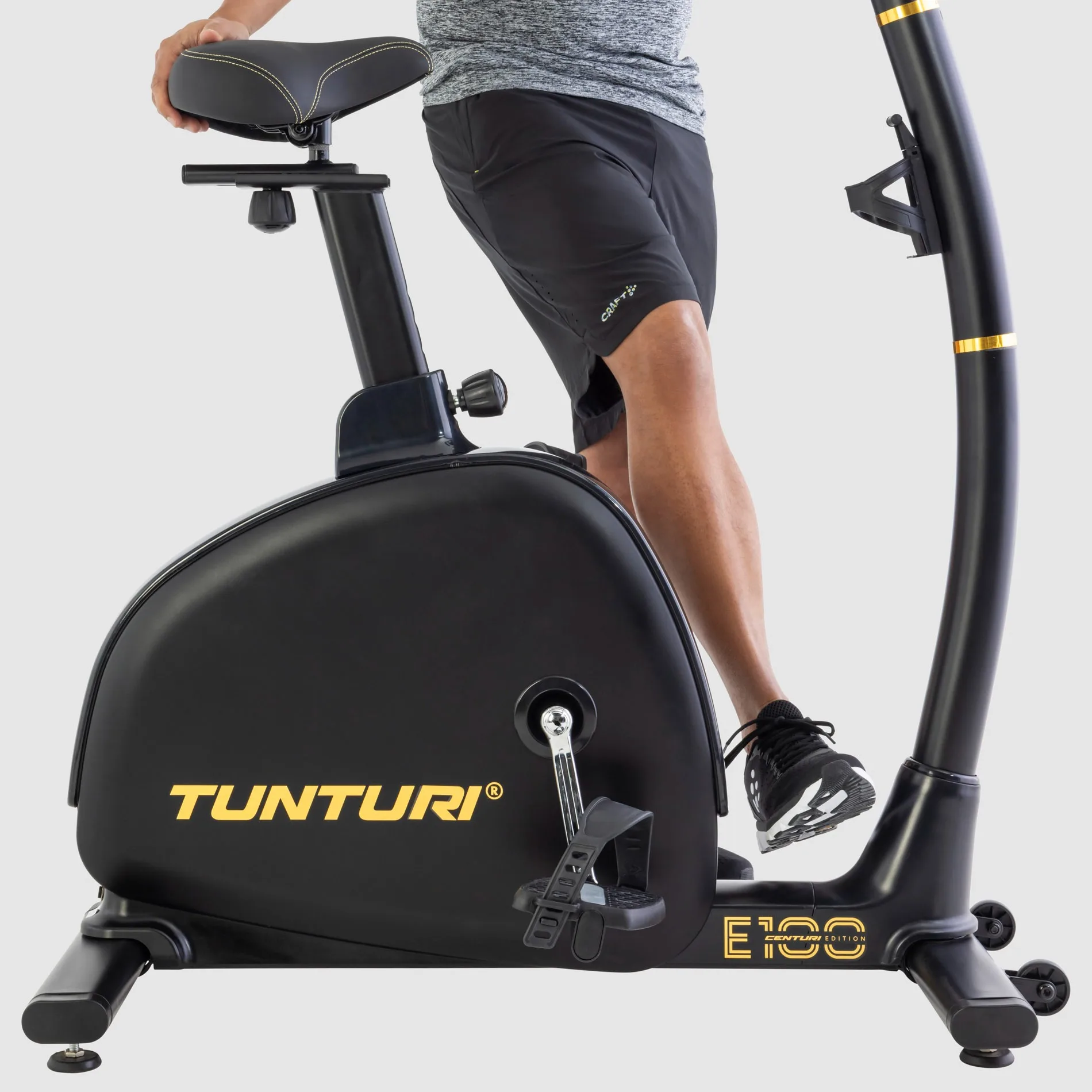 Tunturi lugu algab 1922. aastal, mil Harkke vennad avasid Turus jalgrattapoe. 1960. aastatel tõi Tunturi esimesena maailmas turule ergomeetrilise treeningratta wattidel treenimiseks. 100. juubeliaasta tähistamiseks loodi eksklusiivne Centuri limited edition toodete sari elegantse musta-kuldse disainiga. E100 on selle sarja uhke esindaja — kvaliteet, innovatsioon ja luksus ühes paketis.