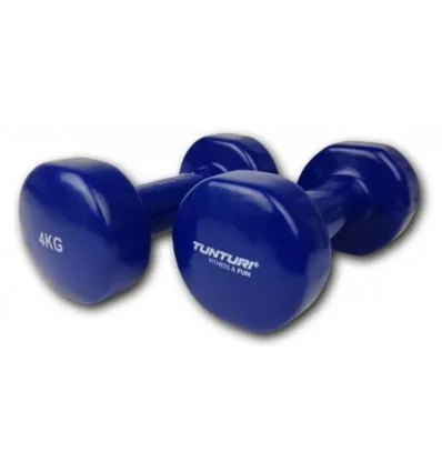 kahte hantlit Ühe hantli kaal 4kg; Vinüülkate tagab mugava ja kindla hoide Ergonoomilised käepidemed; Pestav. 4kg hantlid sobivad käte-, rinna- ja seljalihaste treenimiseks.