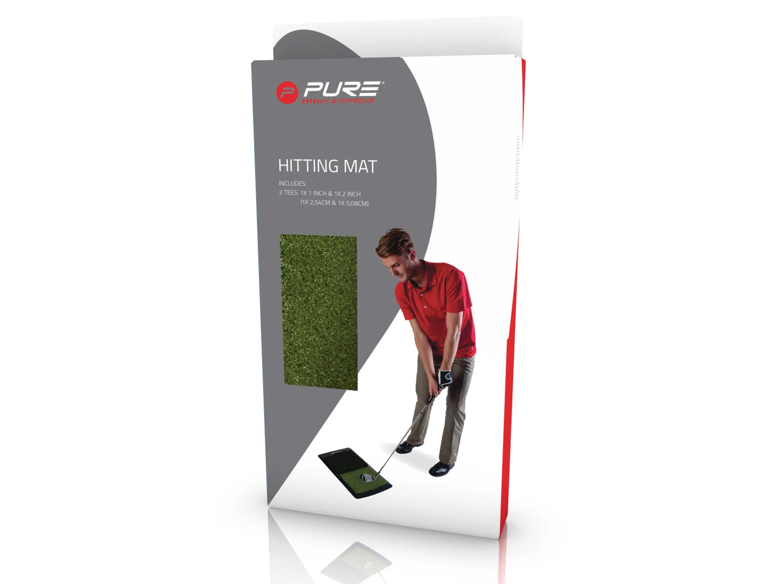 Kuna 6 lööki 10-st golfiväljakul tehakse kas raua või driveriga, on Pure2Improve golfi löögi harjutusmatt ideaalne kaasaskantav treeningvahend kõigile golfimängijatele, kes soovivad harjutada chip-lööke ja draive. Löögimatt jaguneb kaheks erinevaks pinnaks: Ühel pool on lühike kunstmuru , mis simuleerib fairway' rohtu Teisel pool on pikem kunstmuru , mis jäljendab rough'i ehk pikemat rohtu Komplektis on kaks vastupidavat eemaldatavat kummist tiid (47 mm ja 57 mm), mis võimaldavad sul harjutada draivilööke oma südame heakskiidul ilma vajaduseta minna driving range'ile.