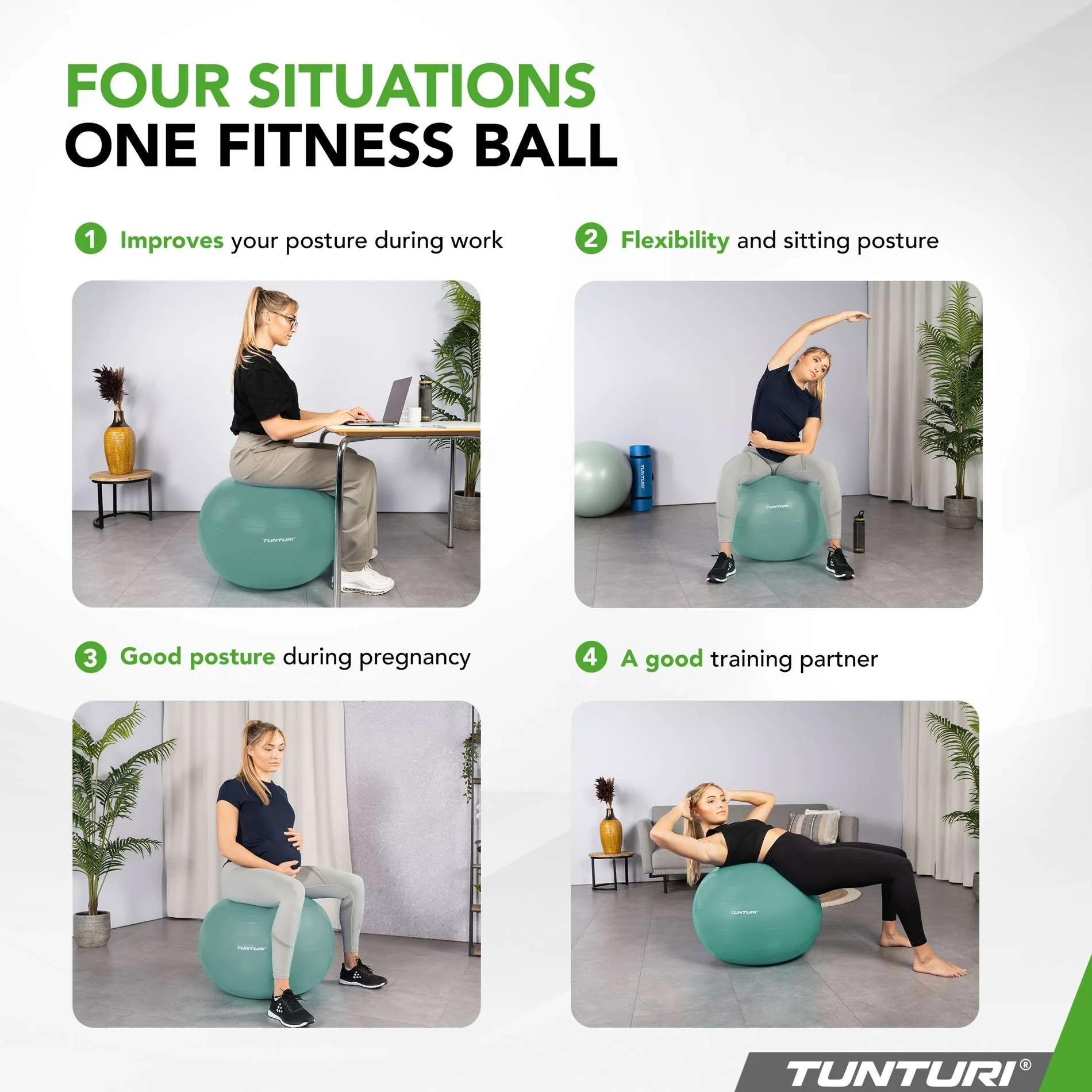Optimaalne tugi treeningutel, taastusravis ja raseduse ajal Olgu see treening, taastusravi või rasedus, Anti-Burst fitness-pall pakub sobivat tuge igaks olukorraks. Palli kandevõime kuni 220 kg muudab selle sobilikuks erinevateks harjutusteks ja igapäevasteks tegevusteks, alates tasakaaluharjutustest kuni aktiivse istumiseni. Täiuslik tasakaal stabiilsuse ja haarduvuse vahel Naudi ideaalset tasakaalu stabiilsuse ja paindlikkuse vahel.